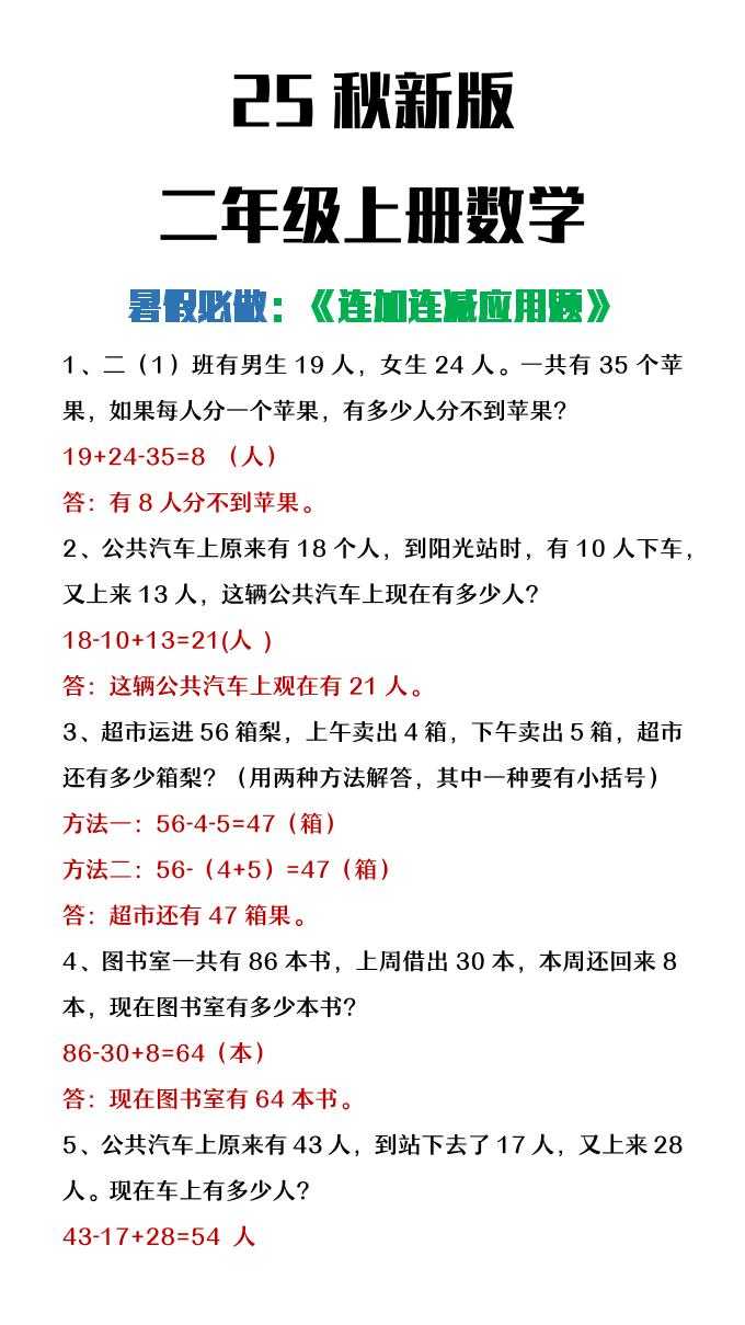 【2025秋新版】二年级上册数学连加连减应用题 【2025秋新版】二年级上册数学连加连减应用题