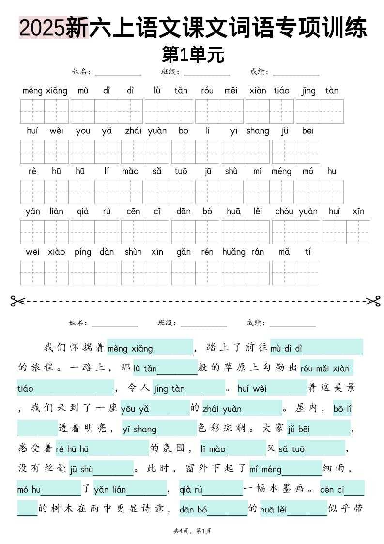 六上语文【2025新-1-8单元词语专项训练(看拼音写词语、情境词语默写)】 六上语文【2025新-1-8单元词语专项训练(看拼音写词语、情境词语默写)】