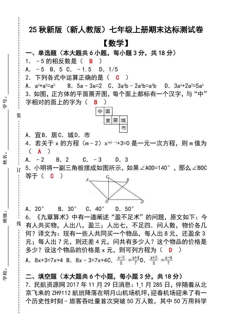 【2025秋新版】七年级【数学】上册期末达标测试卷(含答案) 【2025秋新版】七年级【数学】上册期末达标测试卷(含答案)
