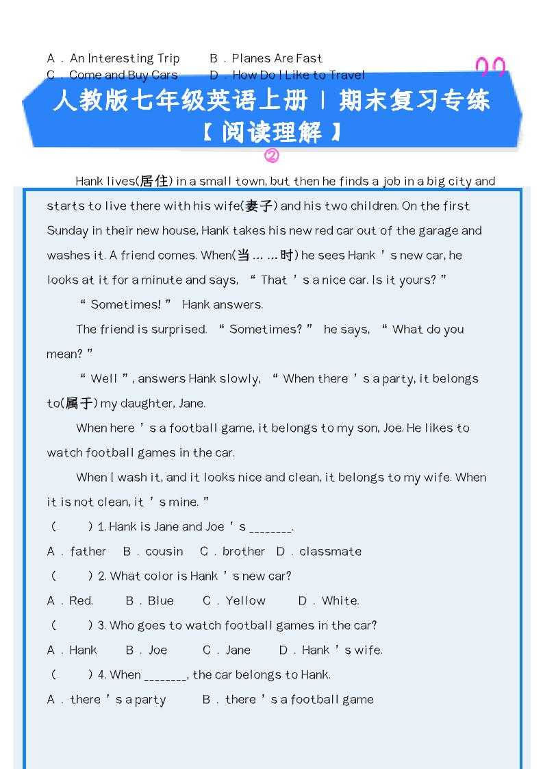 【2025秋新版】人教版七年级英语上册_期末复习专练【阅读理解】 【2025秋新版】人教版七年级英语上册_期末复习专练【阅读理解】