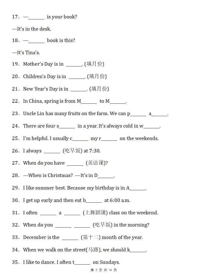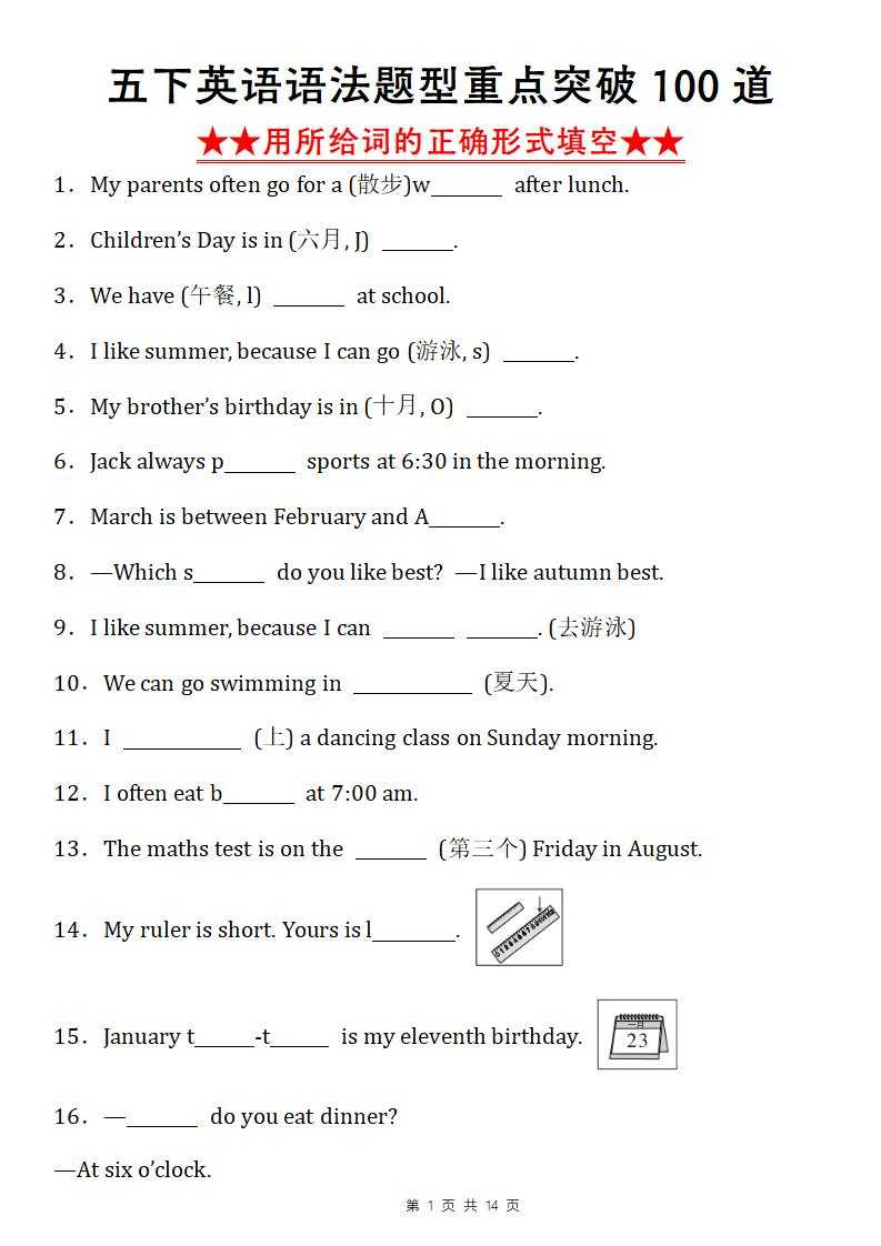 ❤【pep版】五下英语语法题型重点突破100道(用所给词的适当形式填空)(空白版) ❤【pep版】五下英语语法题型重点突破100道(用所给词的适当形式填空)(空白版)