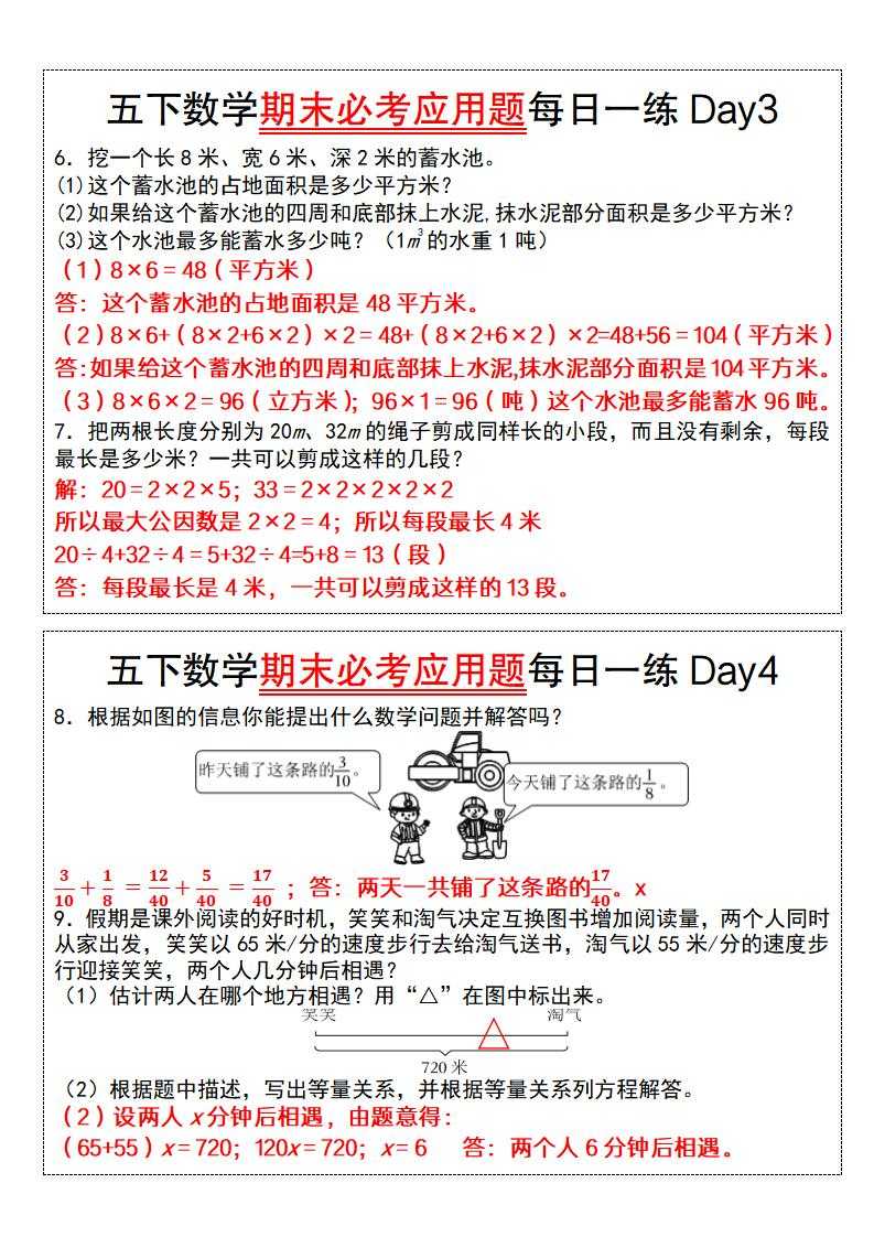 五下数学【期末必考应用题每日一练(答案版)】 五下数学【期末必考应用题每日一练(答案版)】