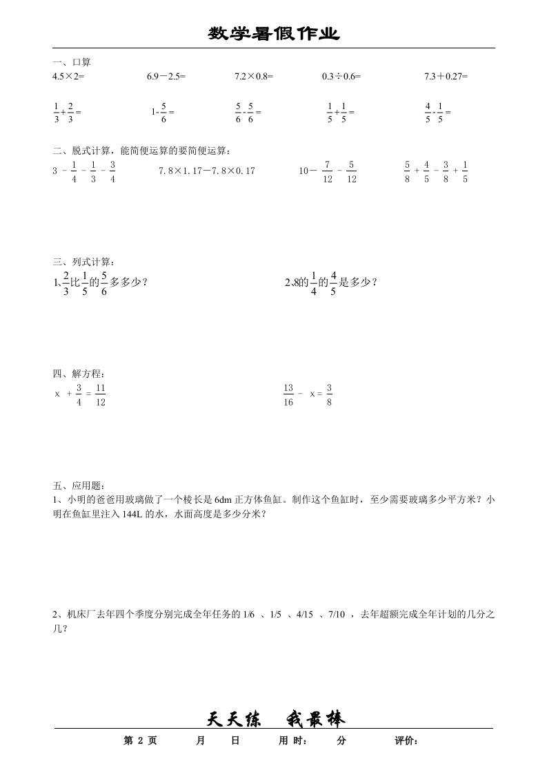 五升六数学暑假作业五下 五升六数学暑假作业五下