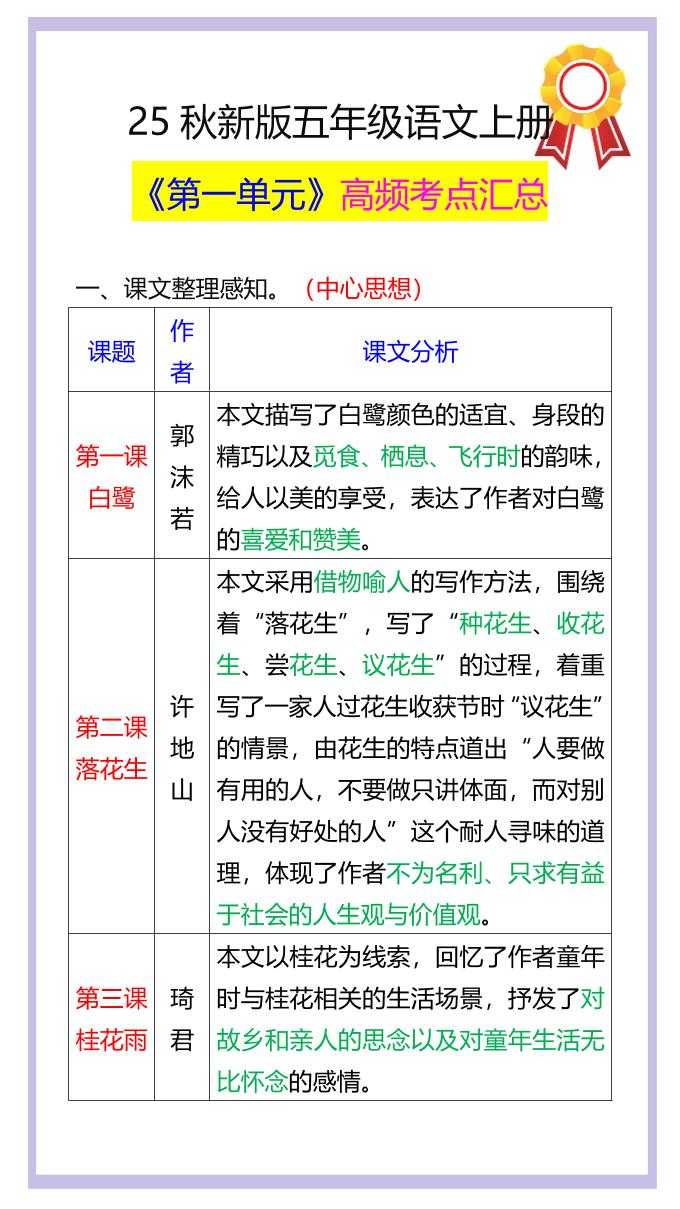 【2025秋新版】五年级语文上册《第一单元》高频考点汇总! 【2025秋新版】五年级语文上册《第一单元》高频考点汇总!