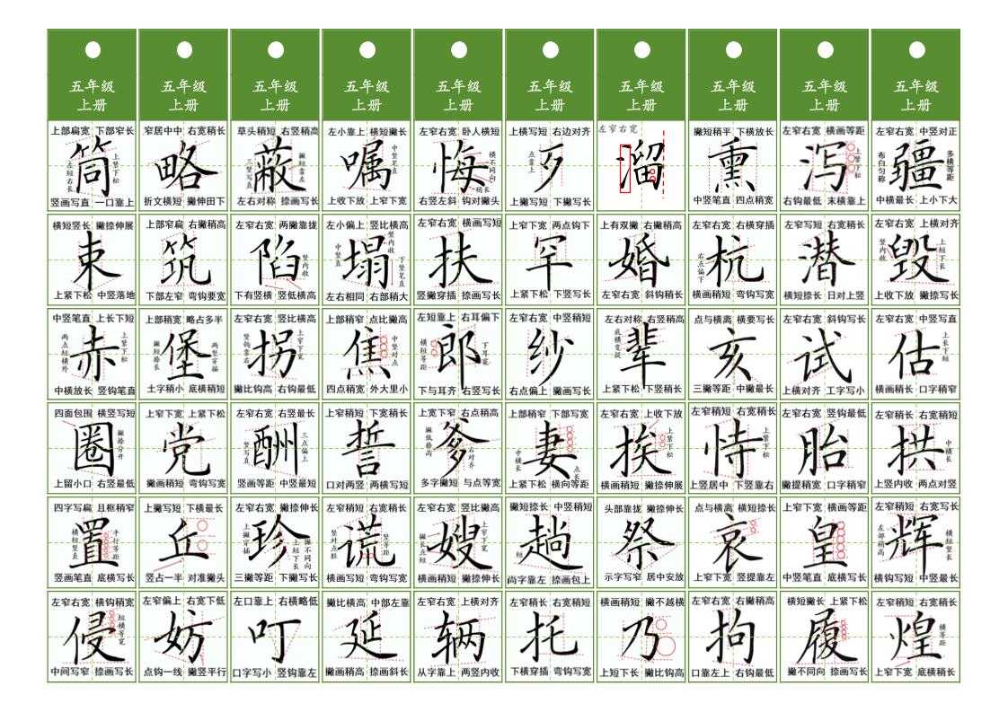 五年级上语文同步精讲字卡(共7页) 五年级上语文同步精讲字卡(共7页)