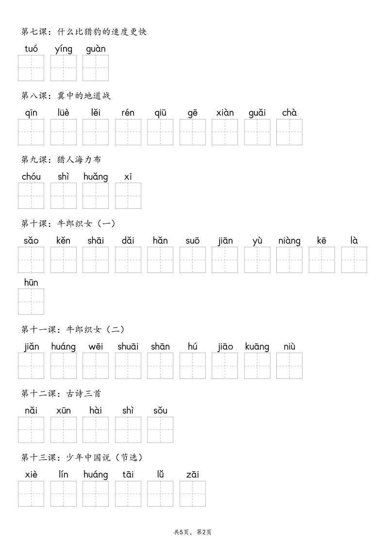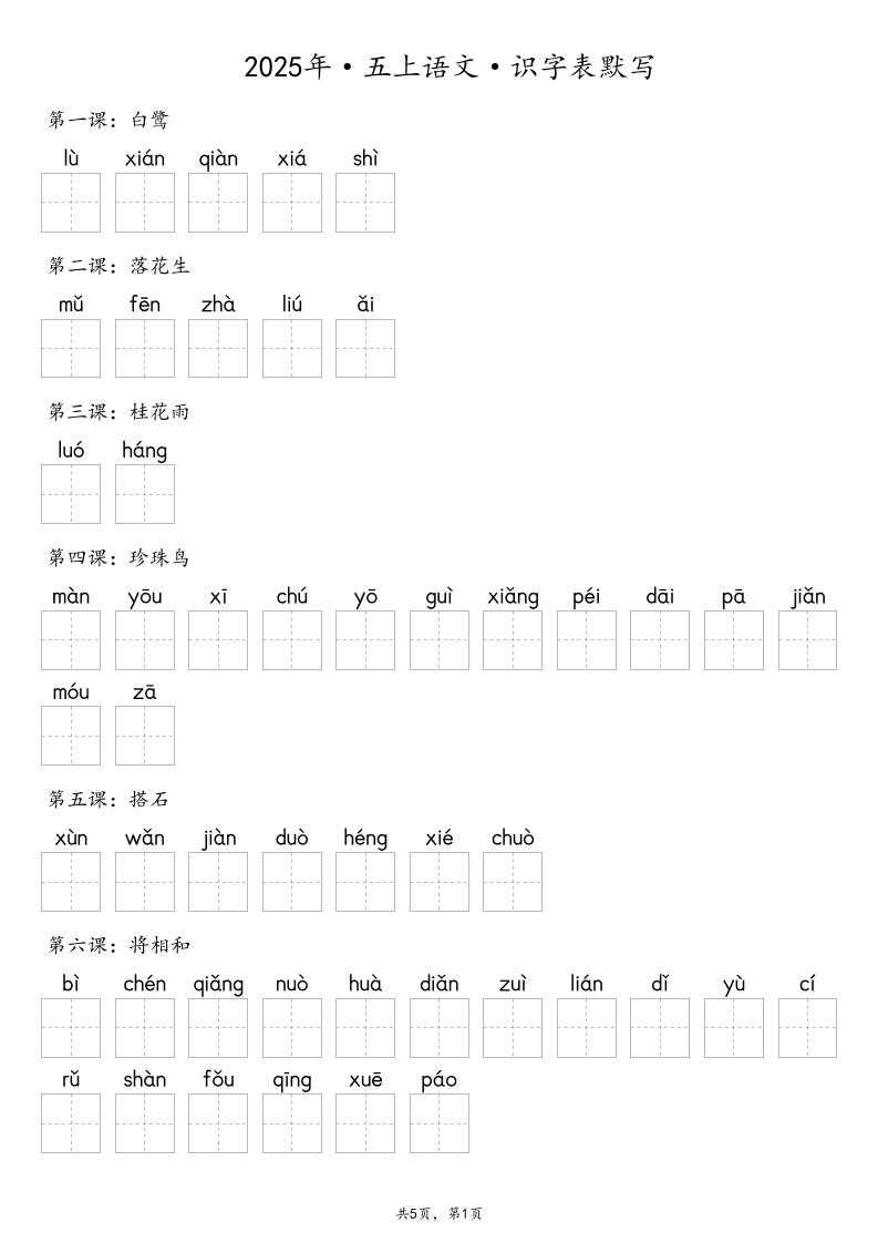 【默写-识字表】2025年五上语文(含答案) 【默写-识字表】2025年五上语文(含答案)